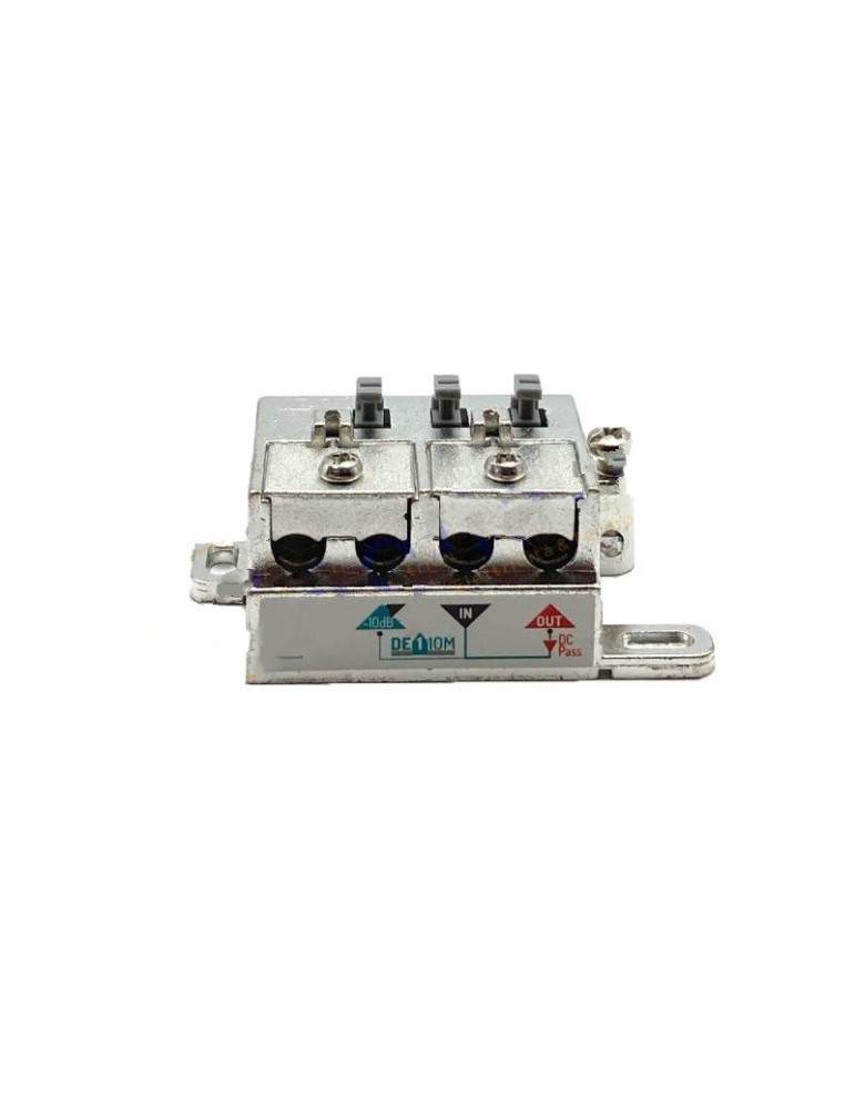 Derivatore a morsetto con fissaggio a molla, DE110M DER 1OUT 5-2400 10DB, 1 uscite. Grazie alla molla il connettore centrale rimane solidale con il resto della meccanica, semplificando il fissaggio del cavo. L'ottima schermatura garantisce la protezione del segnale dai disturbi LTE presenti in etere.