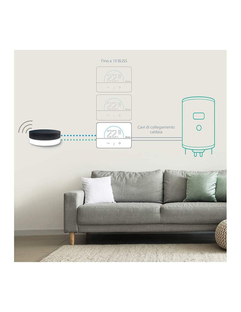 BLISS 2 si controlla e programma tramite l'App Bliss con il gateway utilizzando normalmente la connessione WiFi. BLISS2 può essere controllato anche in assenza del WiFi grazie alla connettività Bluetooth, sempre tramite gateway. Con BLISS2 puoi:
