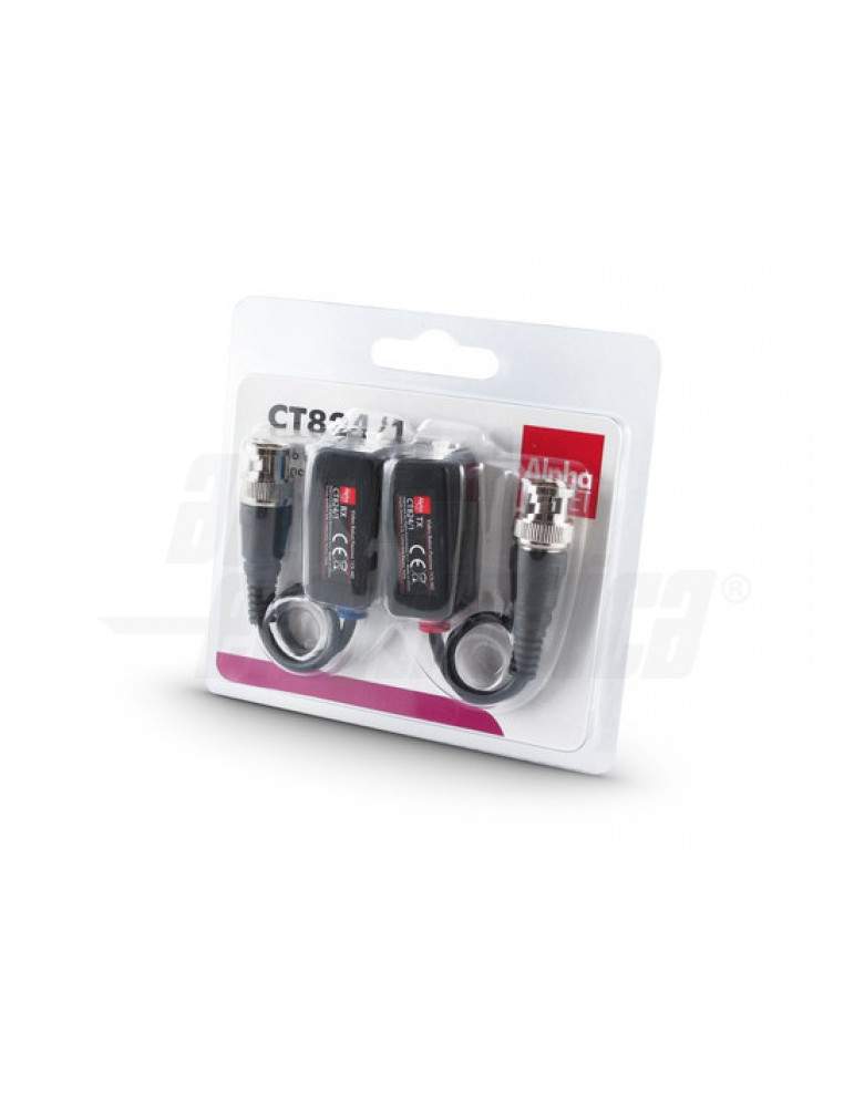 Il balun passivo CT824/1 è un convertitore per la trasmissione del segnale video su cavo twistato Cat5 o superiore per applicazioni TVCC. L'utilizzo di due dispositivi (trasmettitore e ricevitore) consente la trasmissione del segnale video senza necessità di alimentazione esterna. Esso dispone da un lato di un cavetto con connettore BNC per il collegamento del dispositivo video (telecamera e monitor) e dall'altro di una morsettiera a 2 poli a pressione che permette di collegare una coppia a scelta fra le 4 contenute all'interno del cavo Cat5. Adatto per: Telecamere CCTV, Monitor, DVR. Cavo consigliato: UTP Cat5 o superiore 24-22AWG Alimentazione: Non richiesta Reiezione modo comune/modo differenziale: 60dB typ (15KHz-42MHz) Impedenza: Coassiale 75ohm, UTP 100ohm Attenuazione: 1.5 dB typ Max Video: PAL, NTSC, SECAM, AHD, HD-CVI, HD-TVI.
