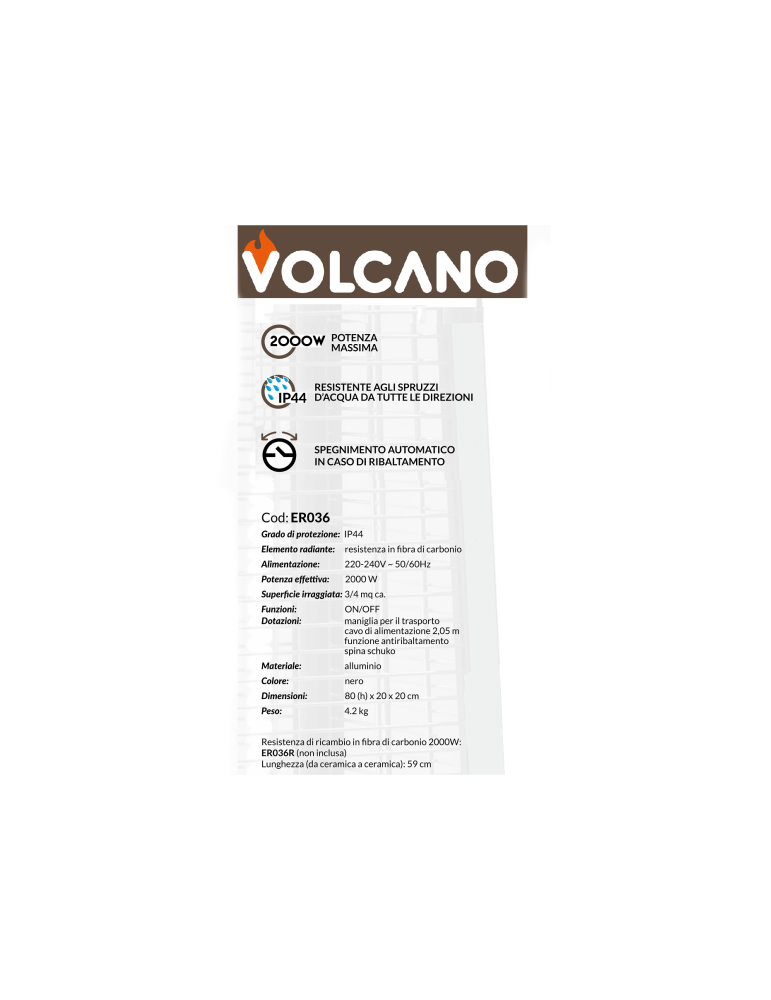 Stufa Elettrica A Torre Volcano Con Resistenza In Fibra Di Carbonio Per Interni Ed Esterni CFG - ER036