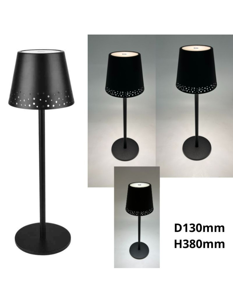 Lampada da tavolo ricaricabile testa traforata, nera. Cfg