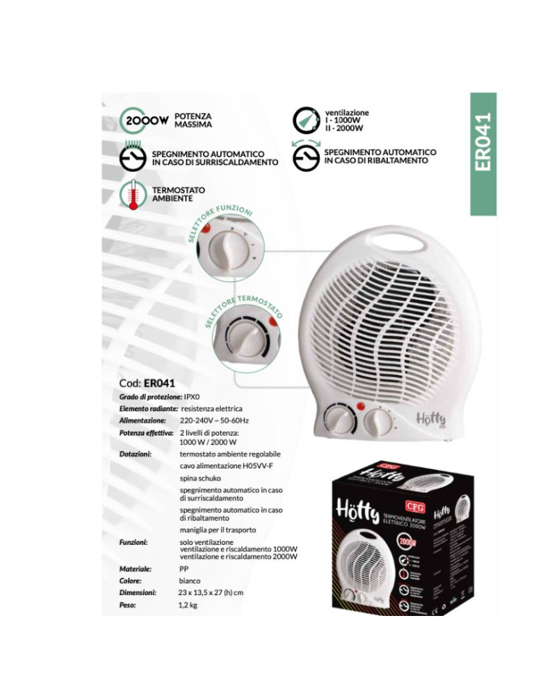 Hotty - Termoventilatore Elettrico 2000W. CFG - ER041 2 livelli di potenza: 1000 W / 2000 W