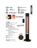 - Dotazioni: Telecomando, Sistema antiribaltamento, Manopola ON/OFF e settaggio manuale Griglia antisurriscaldamento, Cavo 1,8 m, Base fissabile al terreno.