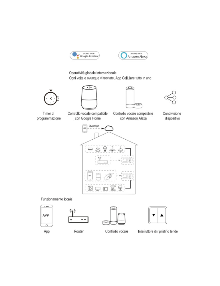 Relè controllo tapparelle Smart. Lavora su piattaforma Tuya tramite app "Smart Life", disponibile gratuitamente su iOS e Android. Ideale per comandare le tapparelle mototirzzate direttamente dal tuo smartphone, con la possibilità di impostare l'orario di accensione dei dispositivi collegati Compatibile con Google Home e Alexa.