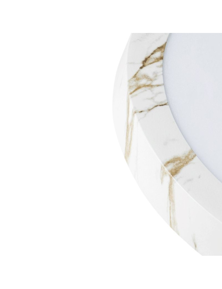 Plafoniera circolare dal design accattivante e adatta a diversi ambienti. E' elegante e presenta un illuminazione sofisticata. Perfetta per l'incasso a soffitto. Stile decorativo e moderno. Crea un'atmosfera raffinata negli interni grazie alle sue venature effetto marmo bianco. Facile installazione e luce omogenea e confortevole. Misure : 222 diametro X 32h. IP20, 2140Lumen, 20w. 4000k/6000K/300K
