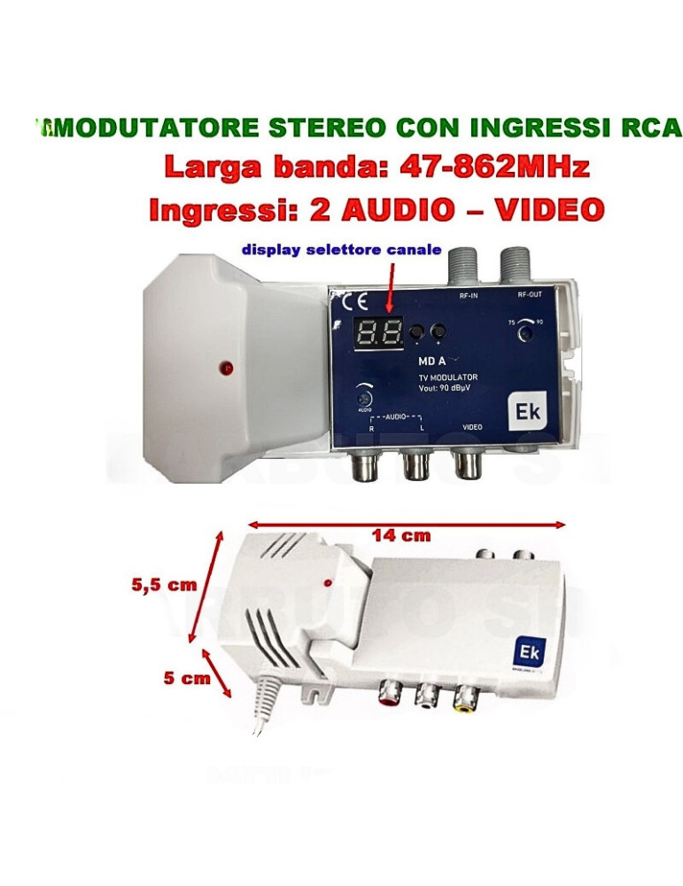 Modulatore DBL MD A stereo rca. Modulatore audio video tv stereo con dispplay per canali.