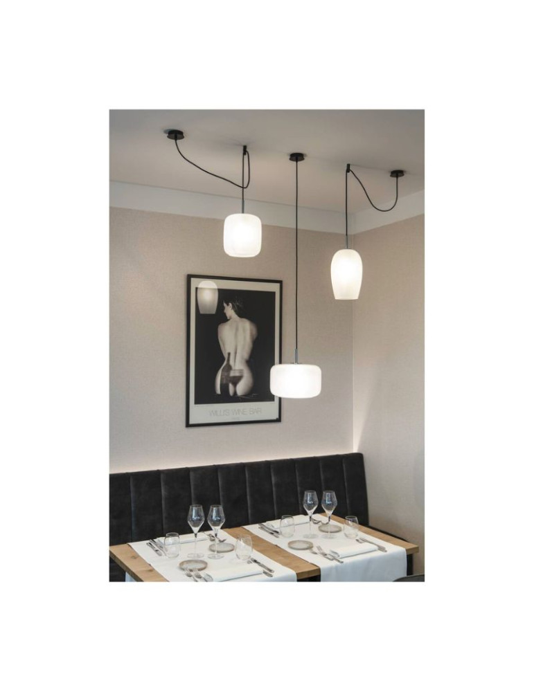 Dotata di diffusore in vetro, PANTILO 28 PD rappresenta una chiara dimostrazione di design. La variante bianca crea un'atmosfera luminosa del tutto suggestiva. Il cavo, della lunghezza di 2,5 m, è accorciabile secondo necessità. La sospensione cilindrica cattura gli sguardi di tutti in ambito alberghiero, ristorativo o negli ambienti abitativi privati e può essere combinata con diversi sistemi di illuminazione grazie all'estremità aperta del cavo.