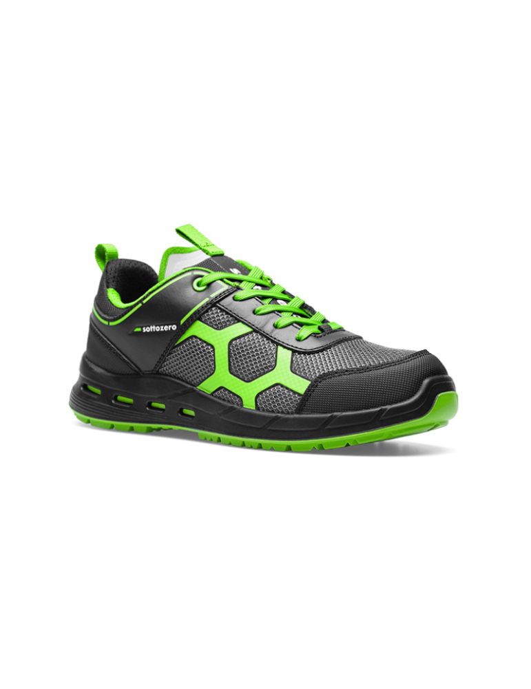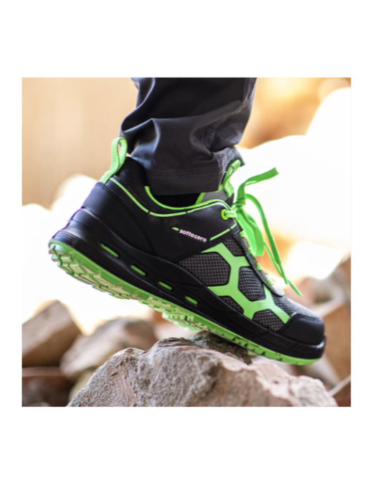 Sottozero, top brand per il workwear dal 1999, presenta la nuova linea Sottozero Footwear sponsorizzata dalla mitica Elettra Lamborghini. Si tratta di un prodotto concepito e sviluppato in collaborazione con i migliori designer italiani per rivoluzionare il mercato delle calzature di sicurezza premium. Esistono 3 gamme di prodotti, caratterizzati da contenuti tecnici diversi fra loro per incontrare qualsiasi esigenza di lavoro. SZ100V è il modello CRYSTAL e nello specifico è di colore Verde , con suola areata che assicura traspirabilità e comfort. Tramite i microfori laterali l'aria scorre dall'esterno all'interno passando attraverso una griglia di scorrimento fino ad arrivare al sottopiede di montaggio traspirabile e impermeabile.