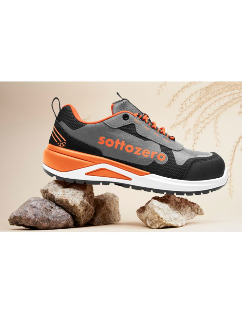 Sottozero, top brand per il workwear dal 1999, presenta la nuova linea Sottozero Footwear sponsorizzata dalla mitica Elettra Lamborghini. Si tratta di un prodotto concepito e sviluppato in collaborazione con i migliori designer italiani per rivoluzionare il mercato delle calzature di sicurezza premium. Esistono 3 gamme di prodotti, caratterizzati da contenuti tecnici diversi fra loro per incontrare qualsiasi esigenza di lavoro. SZ300A è la linea Big Logo colore Arancio con suola antipronazione composta da PU in tre densità, assicura un’ottima stabilità e riduce il rischio di infortunio, nonchè sottopiede autoventilato.