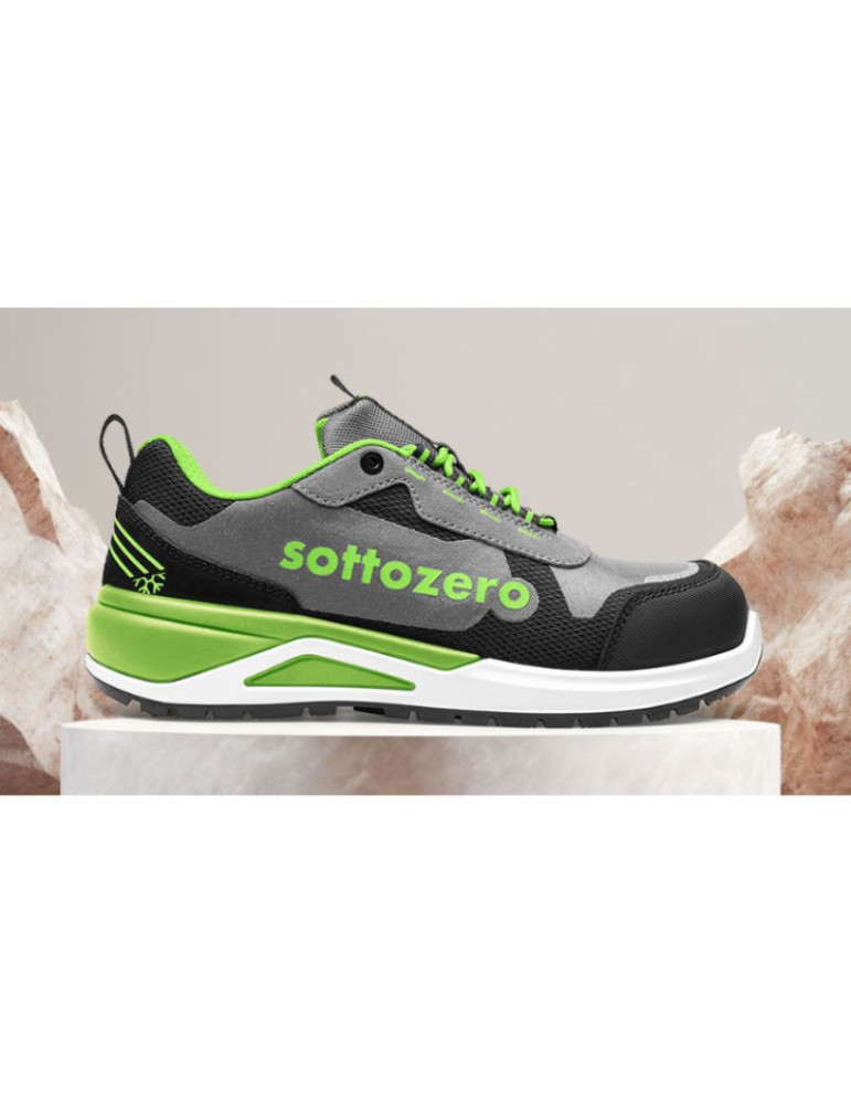 Sottozero, top brand per il workwear dal 1999, presenta la nuova linea Sottozero Footwear sponsorizzata dalla mitica Elettra Lamborghini. Si tratta di un prodotto concepito e sviluppato in collaborazione con i migliori designer italiani per rivoluzionare il mercato delle calzature di sicurezza premium. Esistono 3 gamme di prodotti, caratterizzati da contenuti tecnici diversi fra loro per incontrare qualsiasi esigenza di lavoro. SZ300V è la linea Big Logo colore Verde con suola antipronazione composta da PU in tre densità, assicura un’ottima stabilità e riduce il rischio di infortunio, nonchè sottopiede autoventilato.