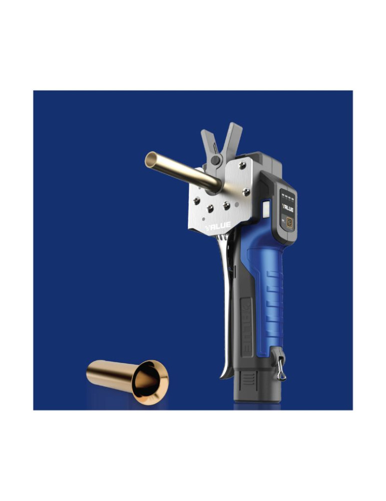 Cartellatrice elettrica a batteria (litio) - esegue cartelle precise e ben delineate su tubazioni in pollici con diametro 1/4", 3/8", 1/2", 5/8" e 3/4", grazie alle dime fornite in dotazione e Una batteria al litio 2 Ah 7,4 V fornita in dotazione, sufficiente per una lavorazione di ben 90 cartelle. Importante: Il gruppo GeneralGas-SaldoGas è distributore esclusivo per l'Italia dei prodotti VALUE. Realizza cartelle di elevata qualità in pochi secondi ed ha una capacità produttiva di circa 90 lavorazioni all’ora, con batteria al litio carica. Il cono ad eccentrico, design esclusivo, rende la flangia liscia ed uniforme. La cartellatrice è dotata di luce led, per l'illuminazione diretta dell’area di lavoro. Fornita in una pratica valigetta in materiale plastico, che alloggia la cartellatrice, la batteria, un caricabatteria e cinque morsetti (dime). N° 5 dime per tubi diametro 1/4″, 3/8″, 1/2″, 5/8″, 3/4″ incluse nella confezione. CONTIENE 1 BATTERIA