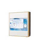 Condizionatore monosplit ARTCOOL Gallery LCD | 12000 BTU | Schermo LCD 27" Full HD, Speaker integrati da 5w, Flusso aria 3D, Wi-Fi. Costituito da UNITA' INTERNA: LGEA12GA2.NSE ed UNITà ESTERNA: LGEA12GA2.U18. Classe energetica A++/A+ ; Gas R32; cornice color legno con profilo inferiore integrato. Dimensiono LxAxP 652x652x158mm. L'unità interna è compatibile con gli assistenti vocali Google Home.