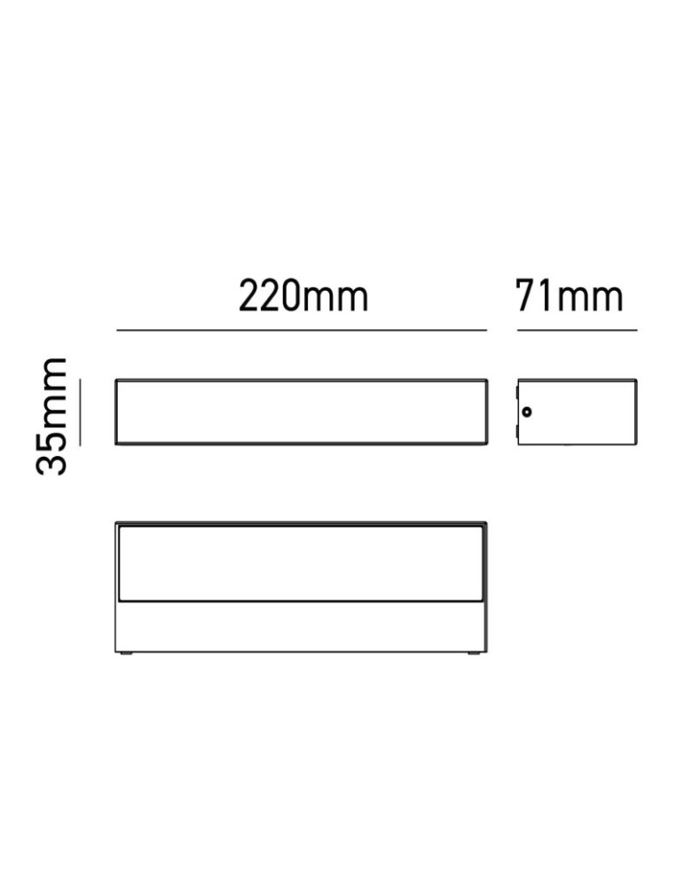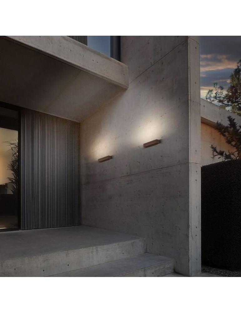 Applique da parete in alluminio con effetto wall washer, perfetta per creare un'illuminazione scenografica. Il suo design elegante è ideale per ambienti sia interni che esterni. La soluzione perfetta per un'illuminazione funzionale e stilisticamente raffinata. _ Applique da parete con corpo in alluminio e diffusore in vetro per interni ed esterni _ Modulo LED integrato da 12W _ Fascio singolo effetto wall washer _ CCT selezionabile. 3000-4000-5000 Kelvin. Lumen 1000. COLORE GRIGIO ANTRACITE