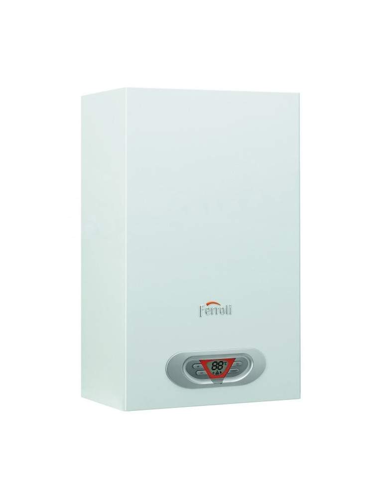 SKY ECO 17 F di Ferroli è uno scaldabagno istantaneo a camera stagna e tiraggio forzato del marchio. Ideale per alimentare fino a 4 rubinetti aperti contemporaneamente. Ha una bellissima linea dal design particolarmente moderno e gradevole; le dimensioni sono molto ridotte e lo rendono adatto ad essere installato ovunque, sia all'interno dei luoghi normalmente abitati che all'esterno in luogo parzialmente protetto. Presenta alto rendimento e l'accensione elettronica automatica ne avvia il funzionamento all'apertura di un rubinetto. Il sistema di controllo a microprocessore è modernissimo e costituisce il “cervello” dello scaldino; l'ECS (Evolved Combustion System) fa in modo che fornisca sempre le massime prestazioni con i minori consumi; questa Scheda Elettronica determina la modulazione di potenza perché controlla tutte le funzioni facendo una diagnosi continua ed adattando il funzionamento del bruciatore alla quantità richiesta di acqua ed alla temperatura di funzionamento impostata; la scheda è predisposta per il collegamento del Kit Antigelo. SKY ECO 17 F ha lo scambiatore a geometria compatta con cinque tubi collegati in serie ed è interamente in rame, la superficie esterna è a bagno di lacca di alluminio atossica: praticamente indistruttibile. Il nuovo bruciatore atmosferico a basse emissioni di NOx raggiunge un elevato livello di efficienza, è in acciaio inox 304 ed è raffreddato ad acqua per tenere sempre bassi i livelli di inquinamento dai già minimi gas combusti che produce. Questo scaldabagno è predisposto a funzionare anche in abbinamento con impianti a pannelli solari. Funzionamento Gas Gpl. Classe energetica A. Camera Stagna - 29,6 Kw - 17 L/min. Dimensioni: Altezza: mm. 595 Profondità: mm. 195 Larghezza: mm. 375