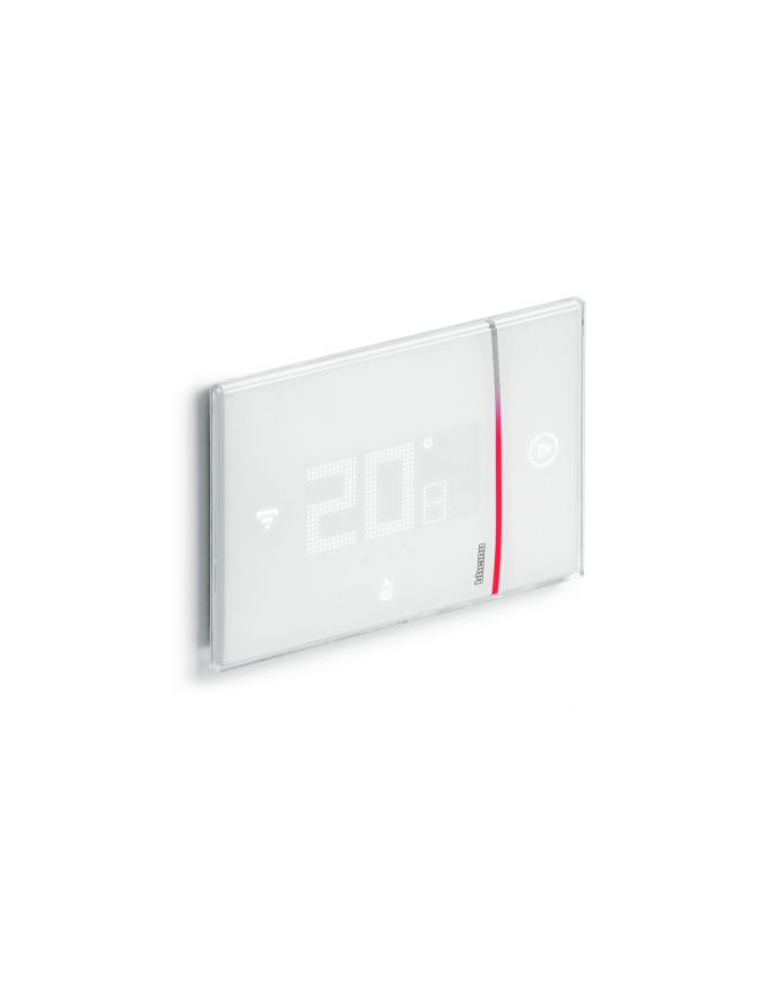 Cronotermostato connesso Smarther 2 with Netatmo bianco. In abbinamento con la APP Home + Control permette di regolare e monitorare la temperatura all'interno degli ambienti in modo preciso e puntuale; tutta la programmazione e gran parte delle funzioni vengono effettuate in maniera semplice e intuitiva utilizzando la APP. Grazie alla connessione Wi-Fi di cui è dotato, Smarther 2 with Netatmo può essere programmato e comandato da remoto; permette inoltre di visualizzare la temperatura e l’umidità misurate nell'ambiente. Localmente sono possibili l’impostazione del livello di temperatura per il funzionamento manuale e l’attivazione della modalità Boost, che permette di forzare l’accensione dell’impianto per un periodo limitato (30, 60 o 90 minuti) indipendentemente dalla temperatura misurata e da quella programmata. È possibile anche impostare una temperatura differente in ogni stanza della casa per il massimo comfort, in quanto è compatibile con le valvole termostatiche intelligenti di Netatmo. Il termostato connesso Smarther 2 with Netatmo è comandabile tramite assistenti vocali Google, Amazon Alexa e Apple Home Kit.